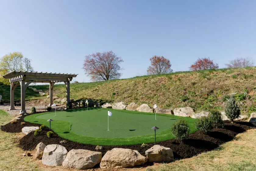 For many homeowners in West Chester, Pennsylvania, a putting green is the answer. Attractive and low-maintenance, a putting green adds value to your property while establishing your backyard as a destination. Complete the picture with a comfortable seating area, fire pit, outdoor kitchen, and landscape lighting for a resort-like oasis designed for play and relaxation.